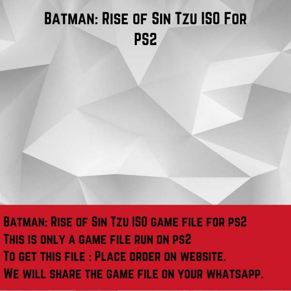 "Batman: Rise of Sin Tzu" is an action-adventure video game for the PlayStation 2 and other platforms. It features the iconic DC Comics superhero Batman as he faces off against a new villain, Sin Tzu, who is introduced in the game. The game combines beat 'em up gameplay with puzzle-solving elements and follows Batman as he fights his way through various levels in Gotham City. Players can control Batman, as well as other characters like Robin, Batgirl, and Nightwing, each with their own unique abilities and fighting styles. The game offers both single-player and multiplayer modes, and features voice acting from the cast of the animated series "Batman: The Animated Series." This is a ISO game file for playstation 2 slim / fat / which will run through pendrive or harddrives only. We will share file on your whatsapp number after placing order. This is not a CD