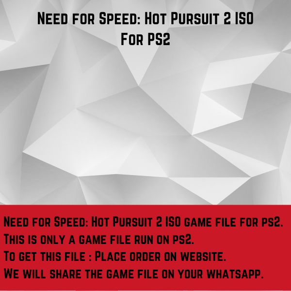 "Need for Speed: Hot Pursuit 2" for the PlayStation 2 is an arcade-style racing game known for its high-speed chases and intense police pursuits. Players can choose to race as either a cop or a racer, taking part in various events across diverse, scenic locations including coastal drives, forests, and mountains. The game features a selection of exotic cars from top manufacturers such as Ferrari, Lamborghini, and Porsche. With a range of modes like Championship, Single Challenge, and Hot Pursuit, the game offers a variety of gameplay experiences. Its standout feature is the engaging police chases, where players can either attempt to outrun the law or use tactical driving to bring racers to a halt. The game combines stunning visuals, fast-paced action, and thrilling races for an exciting racing experience. This is a ISO game file for playstation 2 slim / fat / which will run through pendrive or harddrives only. We will share file on your whatsapp number after placing order. This is not a CD