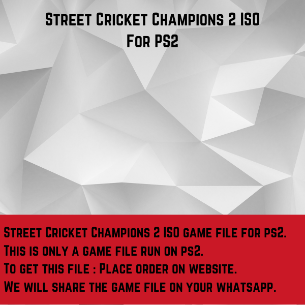 "Street Cricket Champions 2" is a PlayStation 2 game that offers an exciting take on cricket, blending traditional gameplay with street-style rules and environments. Players can choose from a variety of teams and characters, each with unique abilities and skills, as they compete in fast-paced matches in urban settings. The game features a variety of gameplay modes including quick matches, tournaments, and challenges. With its accessible controls and engaging gameplay, "Street Cricket Champions 2" appeals to cricket fans and casual gamers alike. This is a ISO game file for playstation 2 slim / fat / which will run through pendrive or harddrives only. We will share file on your whatsapp number after placing order. This is not a CD