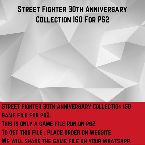 "Street Fighter 30th Anniversary Collection" is a special collection celebrating three decades of the iconic fighting game franchise. It is available on multiple platforms but not on the PlayStation 2 (PS2). The collection features a comprehensive compilation of classic Street Fighter games, including various versions of Street Fighter II, Street Fighter III, and Street Fighter Alpha series. The collection offers both single-player and multiplayer modes, as well as online play for select titles, allowing players to relive the history of the franchise and experience the evolution of the series' gameplay and characters. With enhanced features such as artwork galleries and music player, the collection is a must-have for fans of the series and fighting game enthusiasts. This is a ISO game file for playstation 2 slim / fat / which will run through pendrive or harddrives only. We will share file on your whatsapp number after placing order. This is not a CD