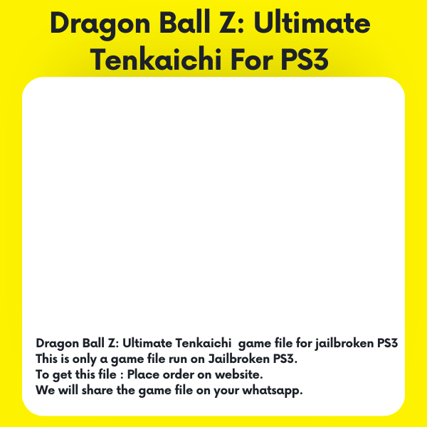 "Dragon Ball Z: Ultimate Tenkaichi" is a fighting video game for the PlayStation 3 console, based on the popular Dragon Ball Z anime and manga series. Developed by Spike and published by Namco Bandai, the game offers intense 3D battles featuring iconic characters from the Dragon Ball universe. Players can engage in epic battles, unleash powerful special moves, and experience a story mode that follows key events from the series. The game also includes customizable characters and environments, allowing players to create their own unique Dragon Ball Z experience. This is only a game file which will run on jailbroken PS3 slim / fat / super slim After placing order we will share the file link on your WhatsApp number This is not a CD