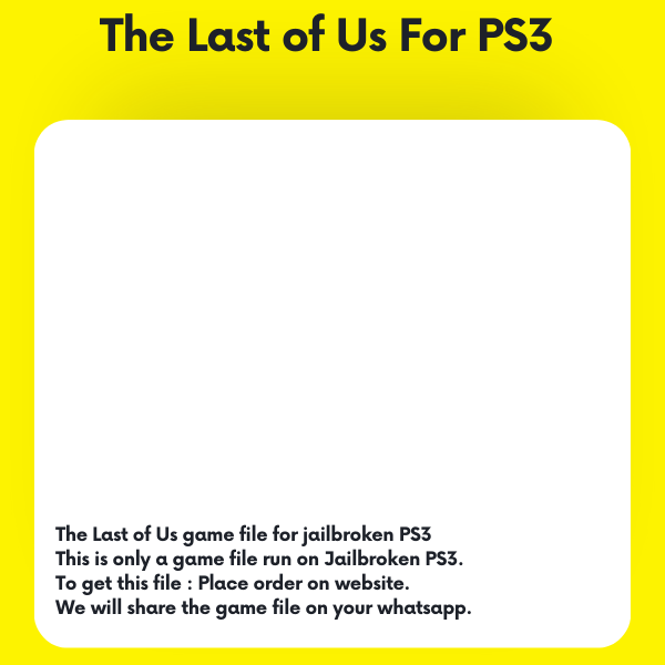 "The Last of Us" is a critically acclaimed action-adventure survival horror game developed by Naughty Dog exclusively for the PlayStation 3. Set in a post-apocalyptic world ravaged by a fungal outbreak that turns humans into mutated creatures, the game follows Joel, a hardened survivor, and Ellie, a young girl who may hold the key to humanity's survival. Players navigate through haunting environments, engage in intense combat, and solve puzzles while unraveling a gripping narrative filled with emotional depth and moral ambiguity. With its atmospheric storytelling, memorable characters, and tense gameplay, "The Last of Us" is hailed as a masterpiece of the gaming industry. This is only a game file which will run on jailbroken PS3 slim / fat / super slim After placing order we will share the file link on your WhatsApp number This is not a CD
