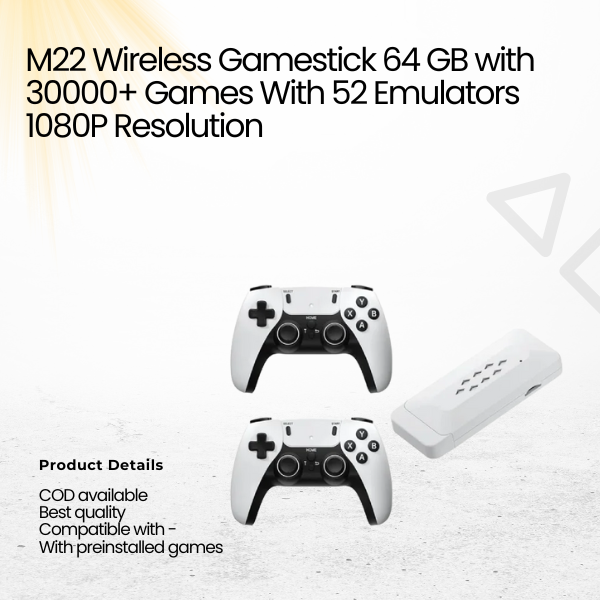 M22 wireless gamestick comes with 30000+ Games and 52 emulators. It gives impressive 1080p full hd output through HDMI. All new ps5 designed wireless controller enhance the gaming experience.