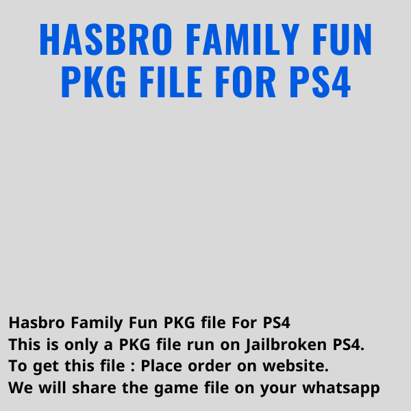 *Hasbro Family Fun* is a collection of digital versions of popular Hasbro board games, offering a fun and accessible experience for players of all ages. Featuring a variety of classic games like *Monopoly*, *Risk*, *Scrabble*, and *Connect 4*, it brings the excitement of family game night to digital platforms. The collection allows players to enjoy these timeless games with friends and family, either locally or online, offering a convenient and engaging way to connect and have fun together. With its simple interface and faithful recreation of beloved board games, *Hasbro Family Fun* provides hours of entertainment for both casual and competitive players. This is only a PKG file for jailbroken PS4 slim / fat / pro. After placing order we will share the file link on your WhatsApp number This is not a CD