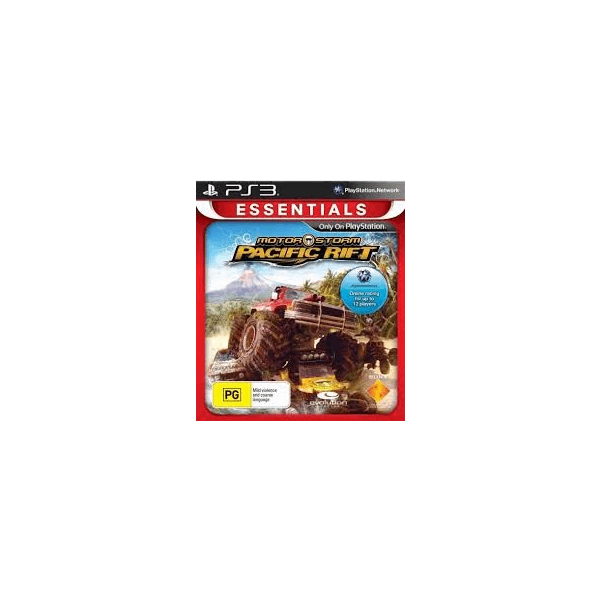 *MotorStorm: Pacific Rift* is an off-road racing video game developed by Evolution Studios and released for the PlayStation 3 in 2008. Set in a lush, tropical island environment, the game offers intense, high-speed races across diverse terrains, including mud, lava, and rocky cliffs. It introduces a variety of vehicles, such as bikes, trucks, and buggies, each with distinct handling and performance characteristics. The game's dynamic weather system and destructible environments add to the thrill, while the multiplayer modes allow players to compete against each other in chaotic, fast-paced races. *Pacific Rift* is known for its visually stunning graphics and adrenaline-pumping gameplay.