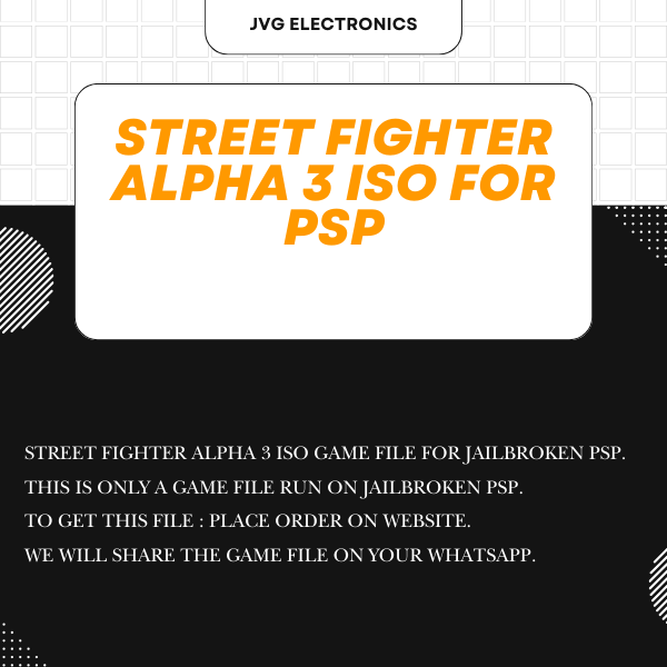 "Street Fighter Alpha 3" for the PSP (PlayStation Portable) is a classic fighting game that brings the intense and fast-paced action of the Street Fighter series to the handheld console. This installment in the Alpha series features a large roster of iconic characters, each with unique fighting styles and special moves. Players can enjoy various modes such as Arcade, Versus, and Survival, as well as an exclusive World Tour mode. The game offers a range of fighting systems and mechanics, including multiple fighting styles (ISMs) to suit different play styles. With its smooth gameplay, vibrant graphics, and engaging multiplayer options, "Street Fighter Alpha 3" on the PSP is a must-have for fans of the series and fighting games in general. This is a ISO game file for PlayStation portable which will run through memory card in all PSP models only. We will share file on your WhatsApp number after placing order. This is not a CD