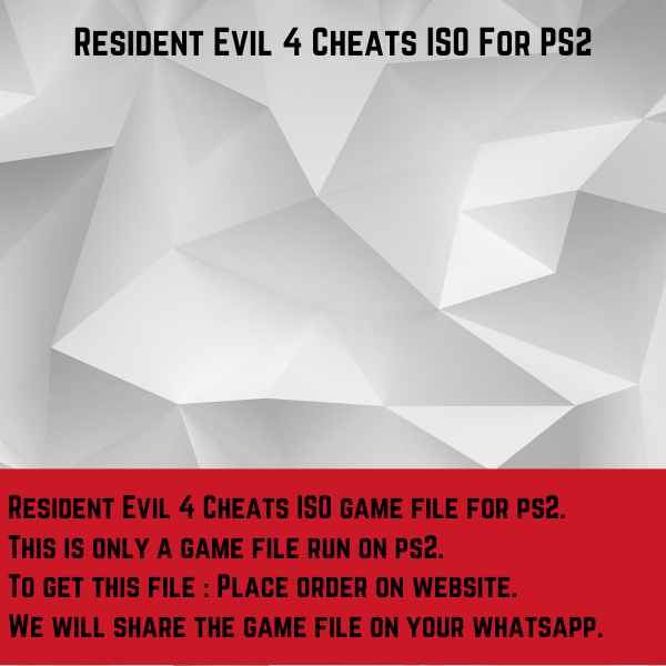 In "Resident Evil 4" for the PS2, players take on the role of Leon S. Kennedy, a government agent on a mission to rescue the president's daughter from a mysterious European village filled with dangerous enemies and creatures. The game combines action and survival horror elements, offering intense combat and exploration. Players can upgrade weapons, collect treasures, and solve puzzles as they navigate through different environments. This is a ISO game file for playstation 2 slim / fat / which will run through pendrive or harddrives only. We will share file on your whatsapp number after placing order. This is not a CD