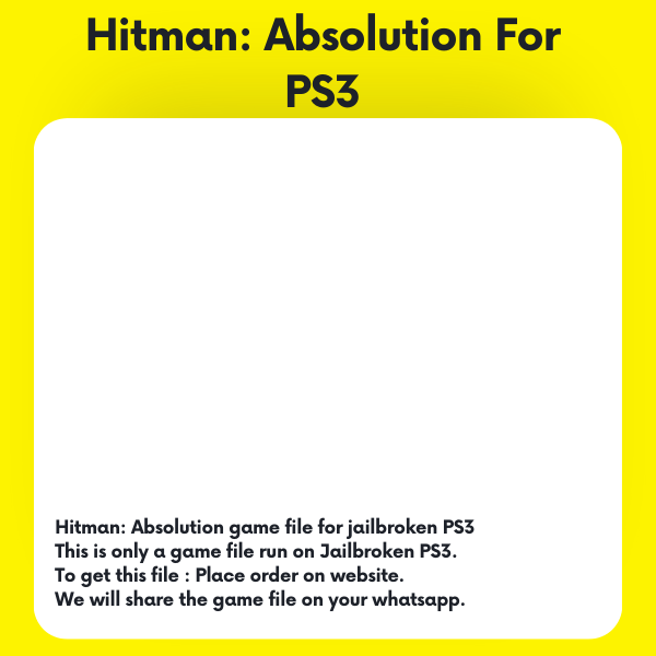 "Hitman: Absolution" is a stealth-action video game developed by IO Interactive and published by Square Enix. Released for the PlayStation 3 (PS3), it follows the story of Agent 47, a genetically-engineered assassin, as he embarks on a personal journey of betrayal and redemption. Players navigate various missions across stunning locales, employing stealth, disguise, and strategy to eliminate targets and accomplish objectives. With its gripping narrative, intricate level design, and immersive gameplay mechanics, "Hitman: Absolution" offers players a thrilling and challenging experience in the world of contract killing. This is only a game file which will run on jailbroken PS3 slim / fat / super slim After placing order we will share the file link on your WhatsApp number This is not a CD Join our telegram for free gaming files https://t.me/+MRu5umI_o7lkYmU1 Subscribe us on youtube for more videos http://www.youtube.com/@JVGELECTRONICS1 Follow us on Instagram https://www.instagram.com/jvg.electronics?igsh=dDI4YzhlcG9kMnM5