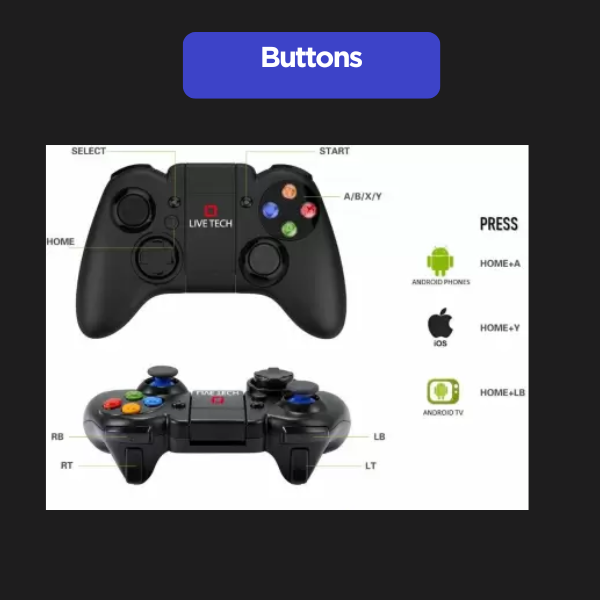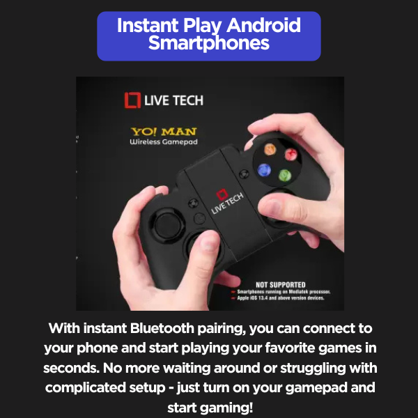 The Live Tech Yo!Man Wireless Smart Gamepad offers a versatile and seamless gaming experience across multiple platforms, including Android, PC, and PlayStation. Equipped with Bluetooth connectivity and a Bluetooth dongle for easy pairing, this gamepad ensures a lag-free, wireless experience. Its ergonomic design and responsive controls, including dual analog sticks and precision triggers, provide comfort and accuracy during extended gaming sessions. The Yo!Man gamepad is an ideal choice for gamers looking for a reliable, cross-platform controller with intuitive functionality and an effortless setup.
