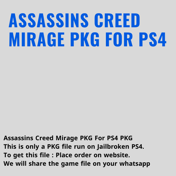 In Assassin's Creed Mirage, players are transported to the mesmerizing world of the Middle East during the height of the Ottoman Empire. Set in bustling cities like Constantinople, players take on the role of a skilled assassin tasked with unraveling a complex conspiracy that threatens to destabilize the region. With stunning visuals and immersive gameplay mechanics, players will traverse vibrant markets, climb towering minarets, and engage in intense combat against rival factions and powerful enemies. As they delve deeper into the intricate narrative, players will uncover secrets hidden within the shadows of history, forging alliances, and making impactful choices that will shape the fate of the empire. Assassin's Creed Mirage promises an unforgettable journey through a richly detailed world filled with intrigue, betrayal, and adventure. This is only a PKG file for jailbroken PS4 slim / fat / pro. After placing order we will share the file link on your WhatsApp number This is not a CD