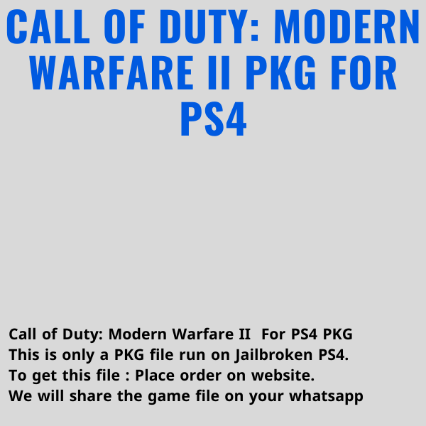 "Call of Duty: Modern Warfare II" is an adrenaline-fueled first-person shooter that thrusts players into a gripping narrative-driven experience set in a contemporary global conflict. Developed by Infinity Ward, the game features intense multiplayer action alongside a captivating single-player campaign, where players navigate through a complex web of geopolitical intrigue and high-stakes combat scenarios. With cutting-edge graphics, immersive gameplay mechanics, and a diverse array of weapons and tactics, "Modern Warfare II" delivers an electrifying gaming experience that pushes the boundaries of the genre. This is only a PKG file for jailbroken PS4 slim / fat / pro. After placing order we will share the file link on your WhatsApp number This is not a CD